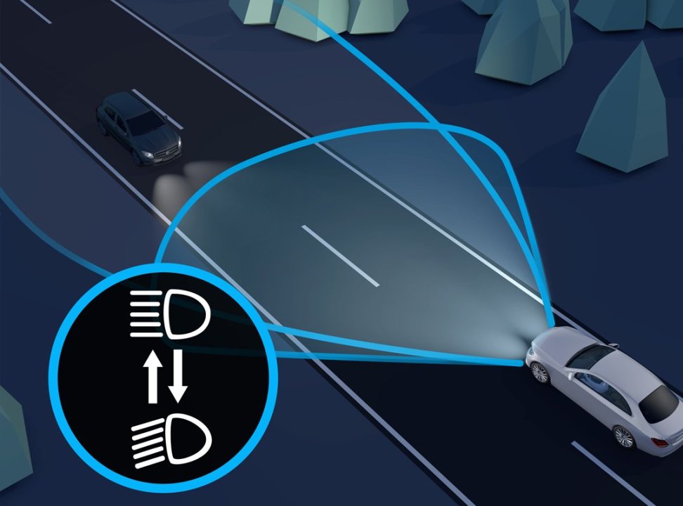 Enciende automáticamente las luces de carretera si no detecta ningún vehículo iluminado delante o en el tránsito que circula en sentido contrario. El alto alcance luminoso te permite ver mejor la carretera y los peligros.
