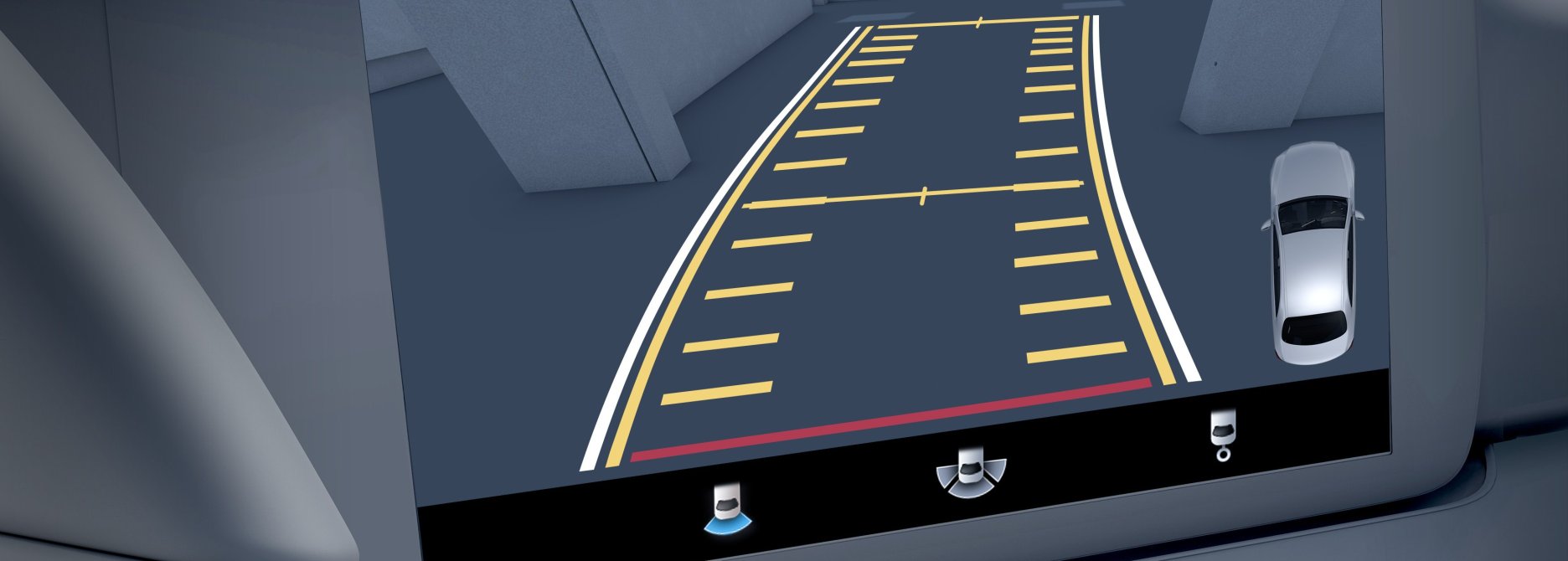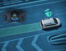 Con la imagen de la cámara en la pantalla, puedes vigilar el entorno trasero. Unas líneas de guía dependientes del ángulo de giro completan la visualización. Las vistas estándar y gran angular pueden mostrar obstáculos y bordillos ocultos.