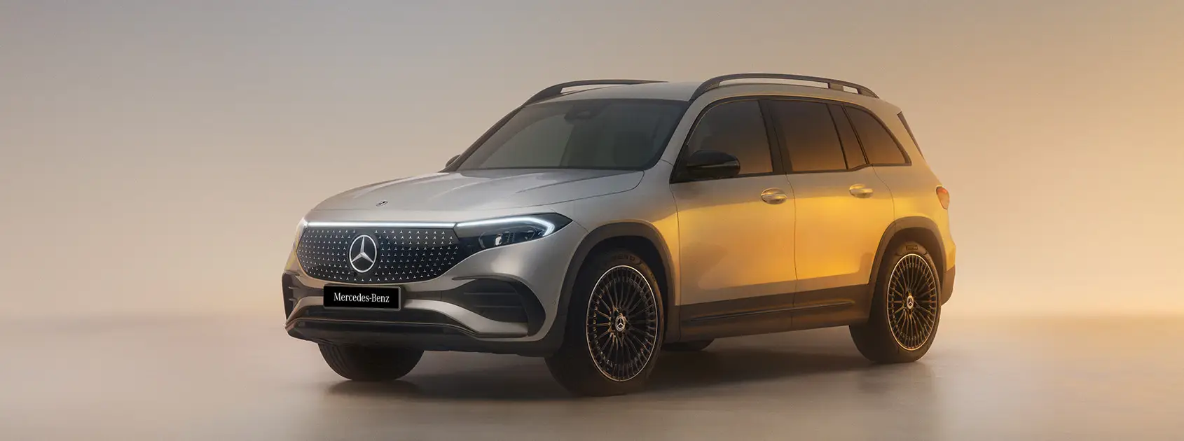 El EQB interpreta el lujo progresivo de línea eléctrica de Mercedes-Benz de manera vanguardista. Presenta la parrilla de panel negro con estrella central y la franja de luz continua en la parte delantera y trasera, elementos distintivos del mundo eléctrico de Mercedes-Benz.