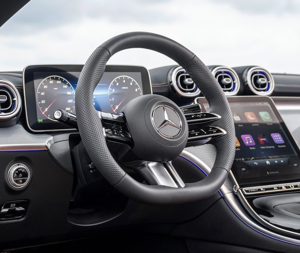 El interior del CLE Cabriolet AMG Line combina deportividad y lujo en un entorno descapotable. Sus materiales premium y los detalles deportivos crean una atmósfera dinámica y moderna, mientras que el diseño abierto y la tecnología intuitiva, elevan la experiencia de conducción a otro nivel.